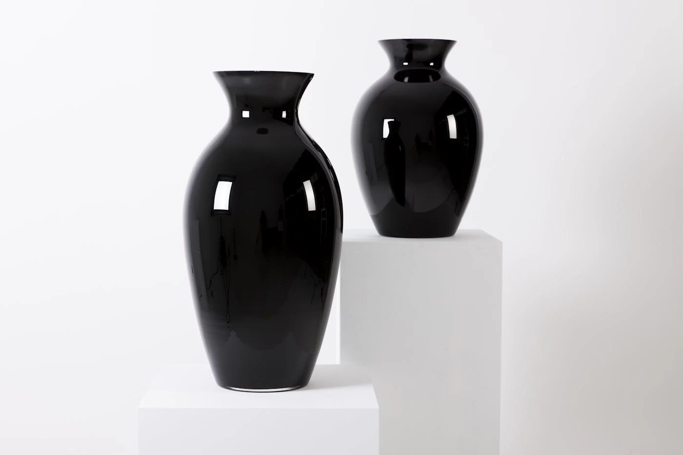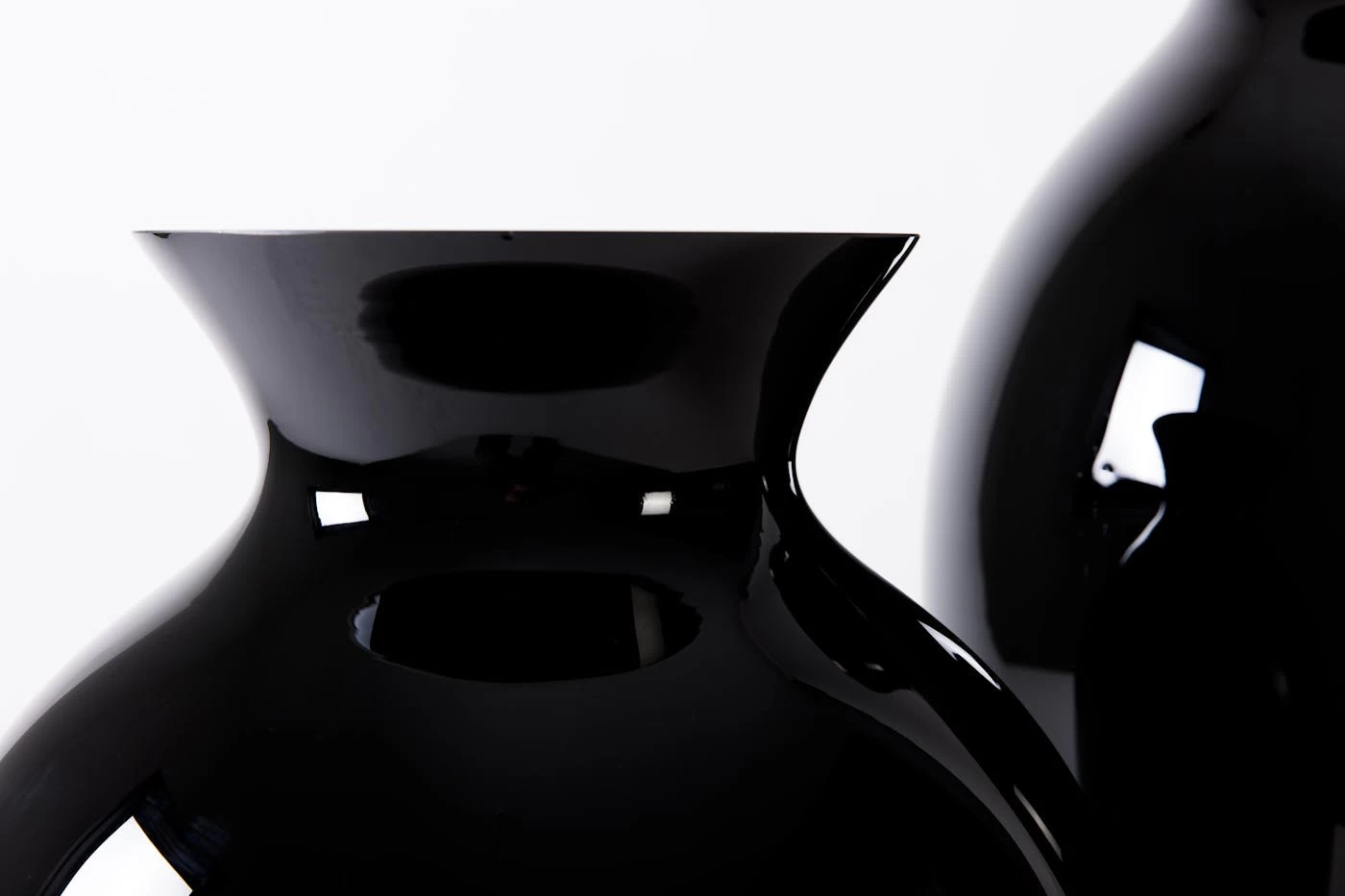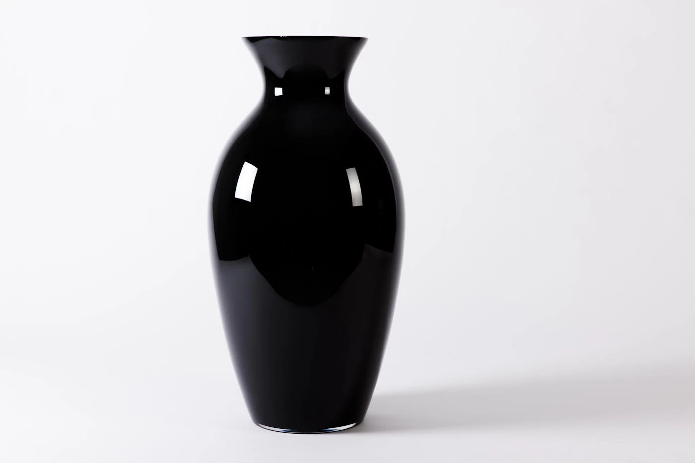 This distinguished black vase with grand dimensions boasts a stunning shine, elegant curved shape, and wide rim. Mouth-blown for a superior artisan quality, this prime product creates a grand atmosphere wherever it is placed.