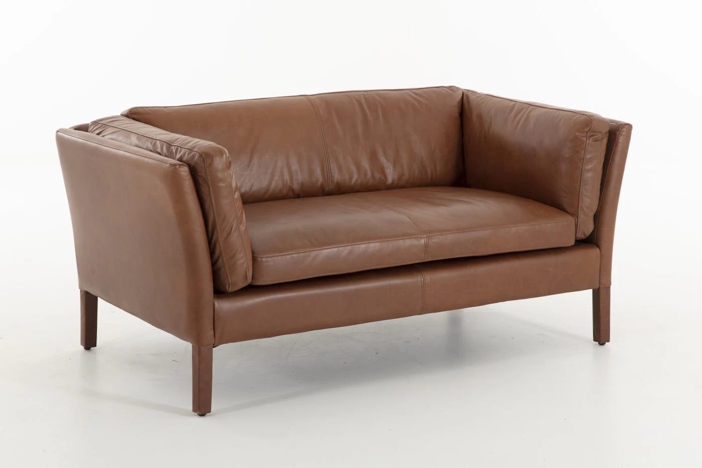 With an elegant shape influenced by the Art Deco movement, this lovely seat will fit any space and décor! Fashioned from lush and supple tanned leather with a light brown tobacco shade, the Bellamy is a true beauty. It’s full of unique features: its legs are also covered with leather, and the foam-filled cushions wrapped in fiber hold their own shape for lasting comfort.