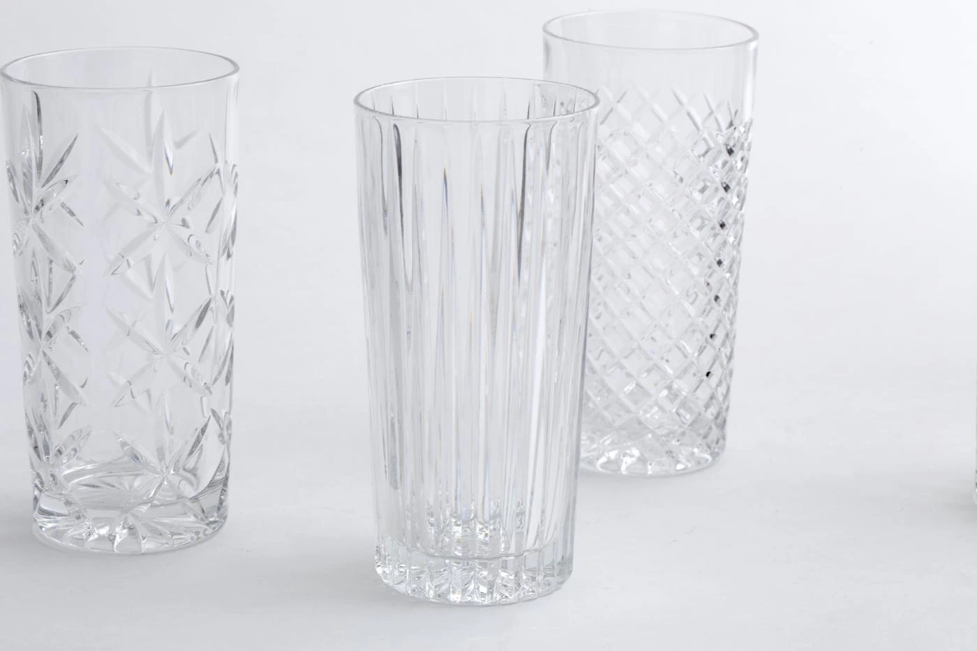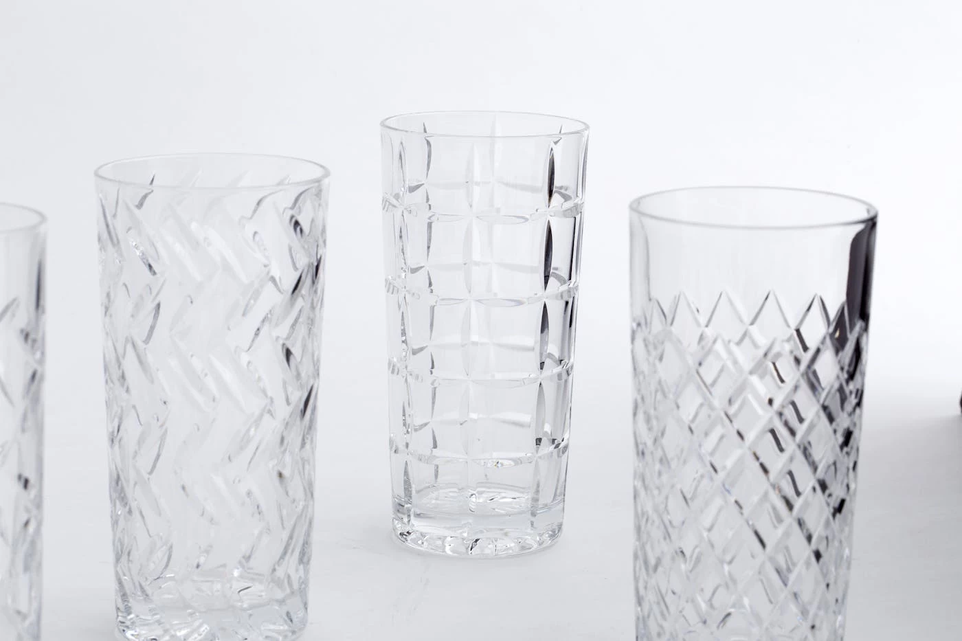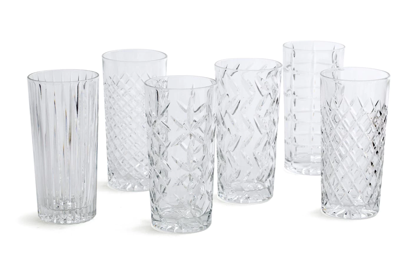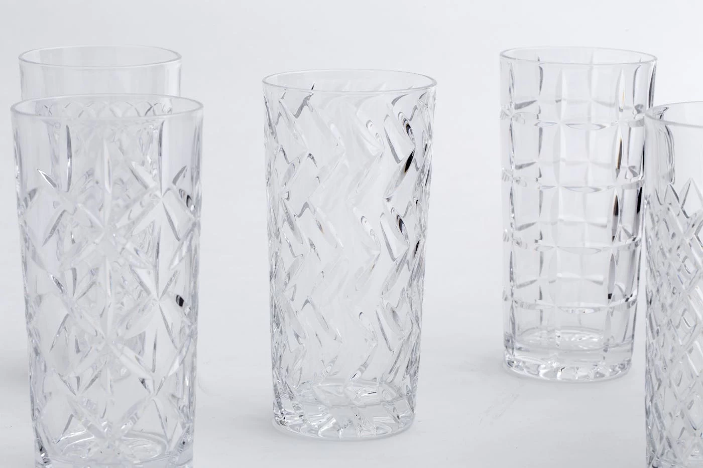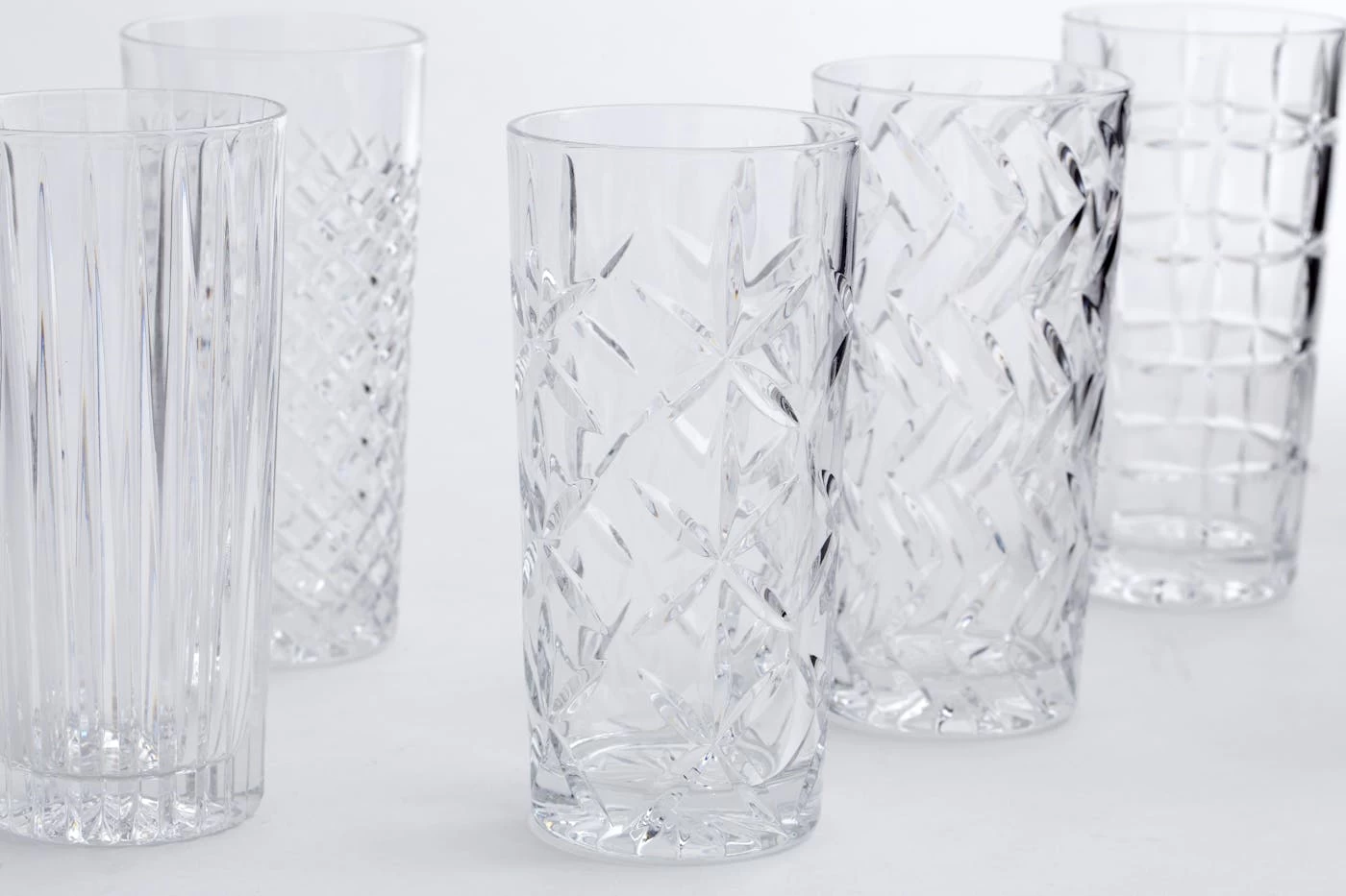 Hand-cut crystal brilliantly captures the light with six different patterns.