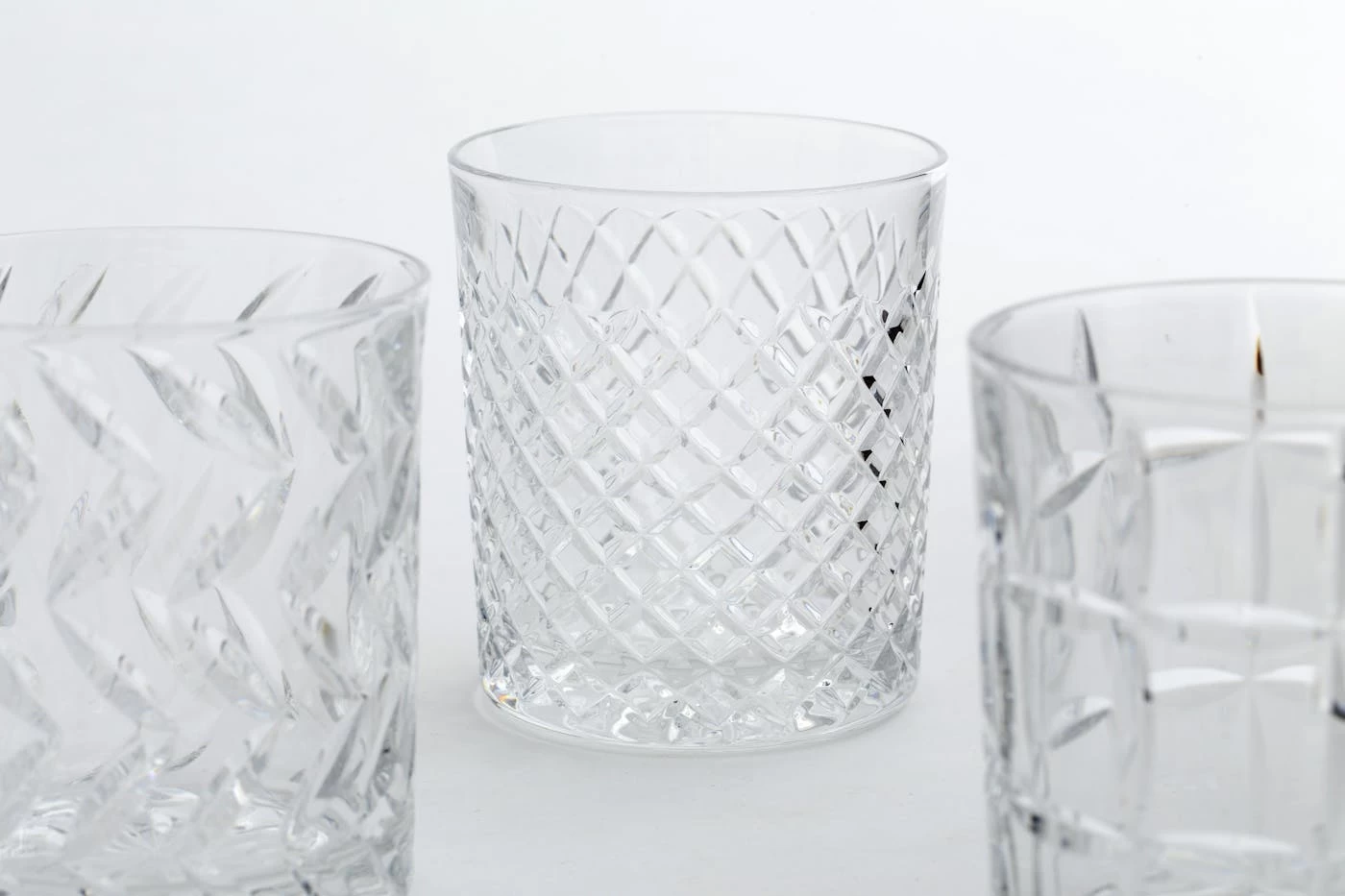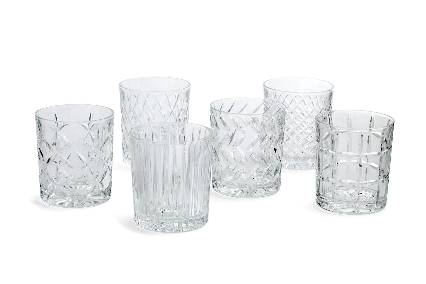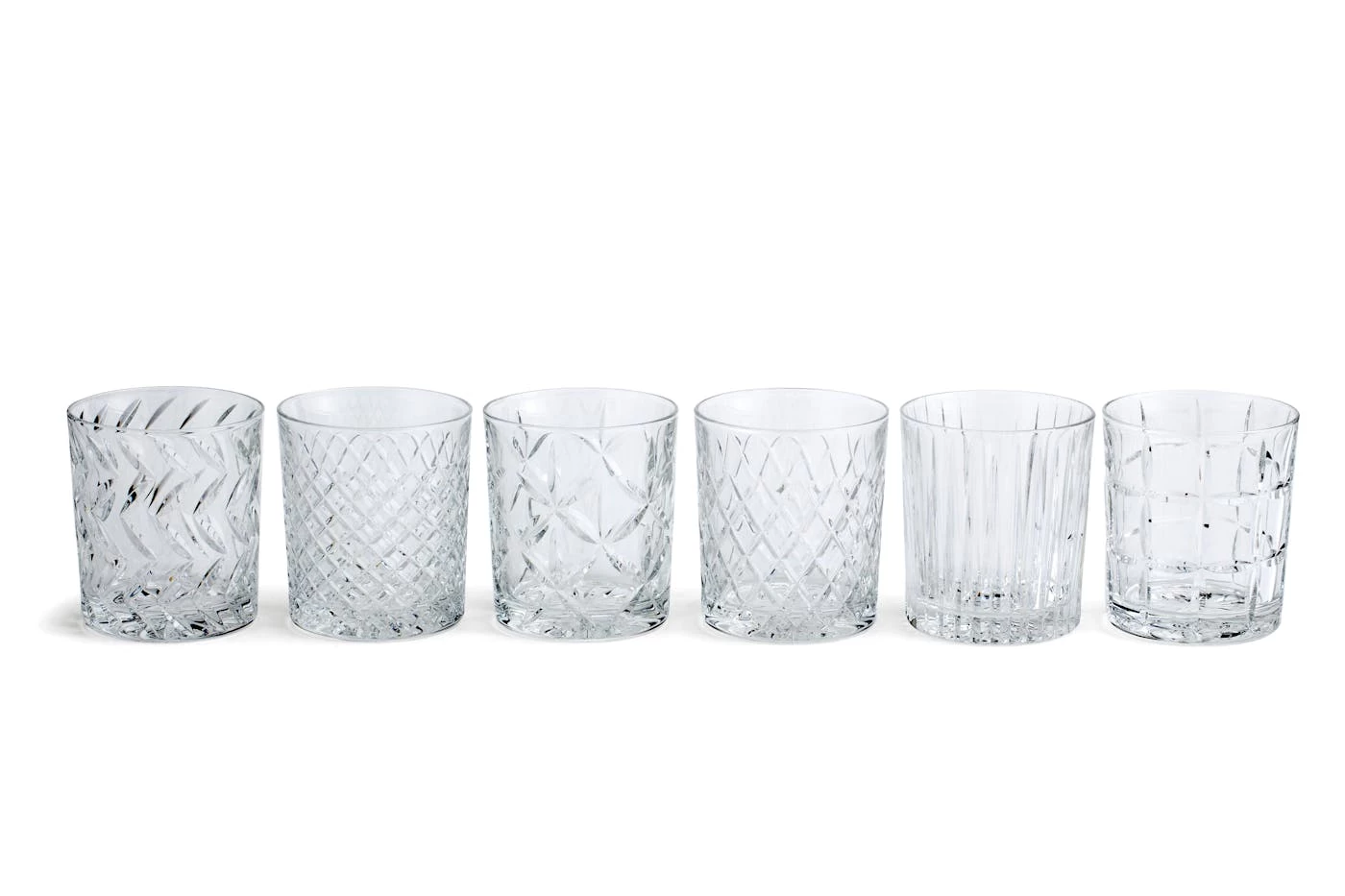 Hand-cut crystal brilliantly captures the light with six different patterns.