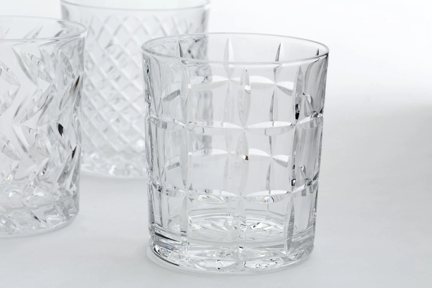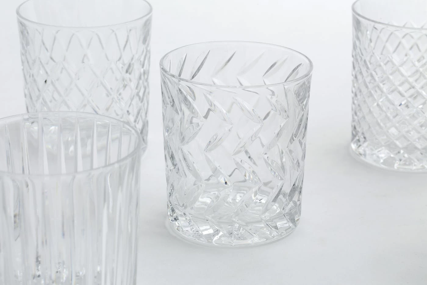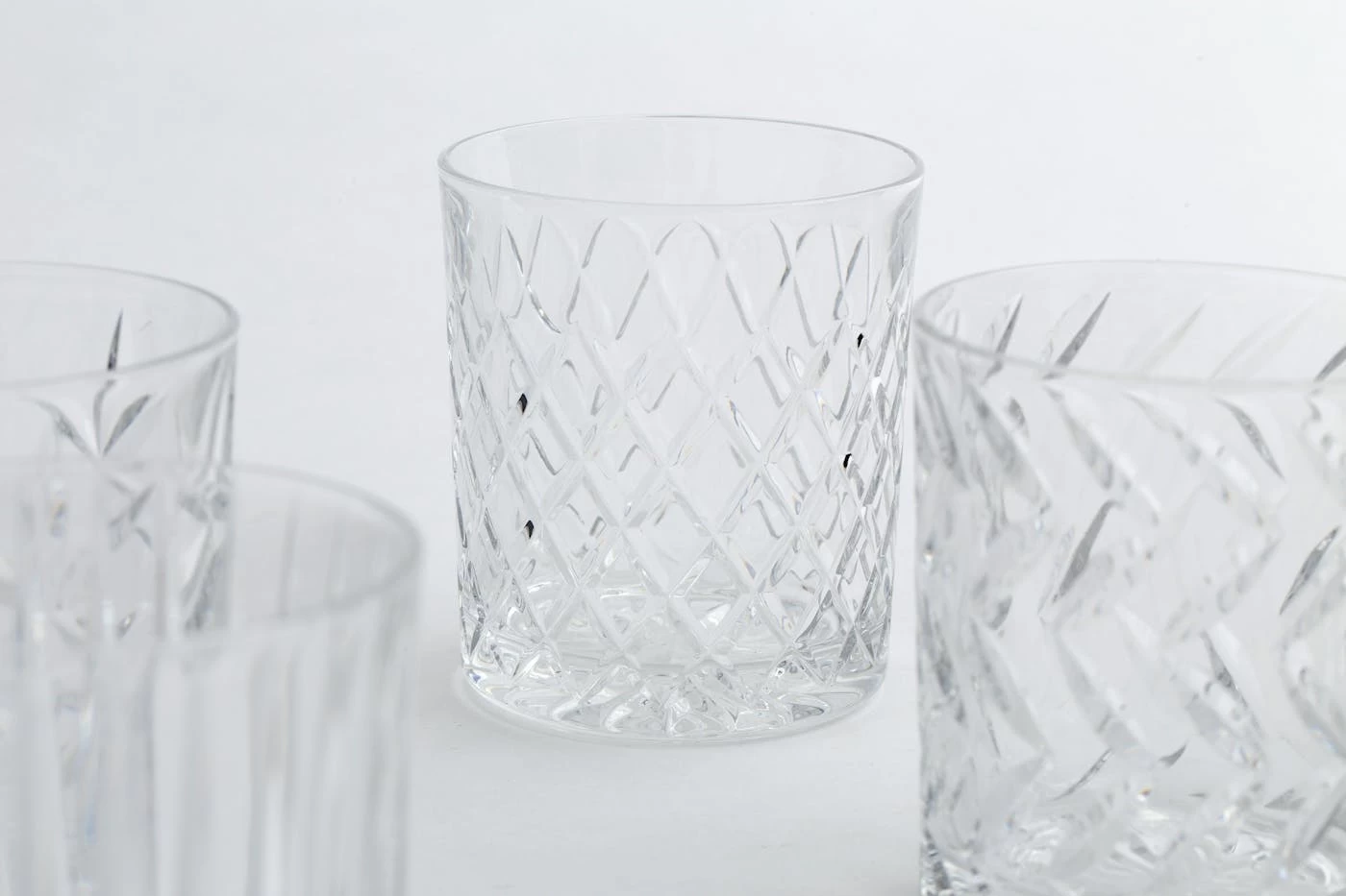 Hand-cut crystal brilliantly captures the light with six different patterns.