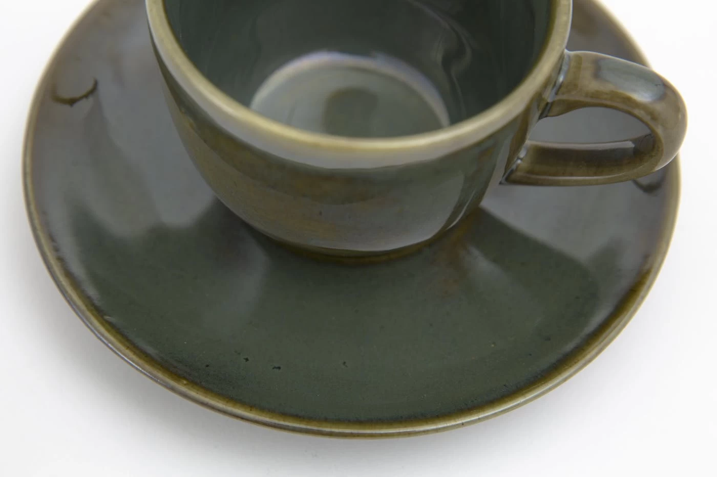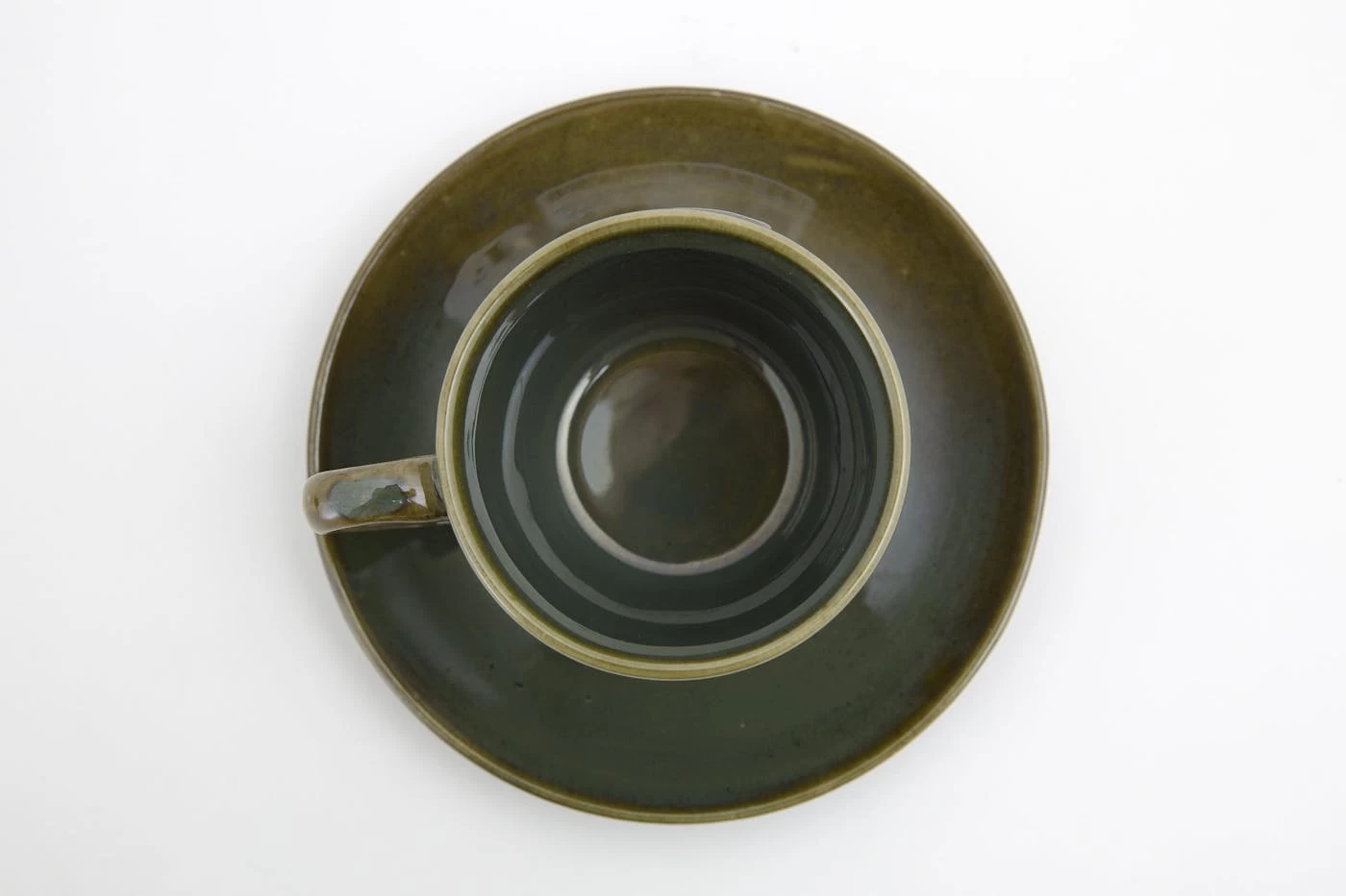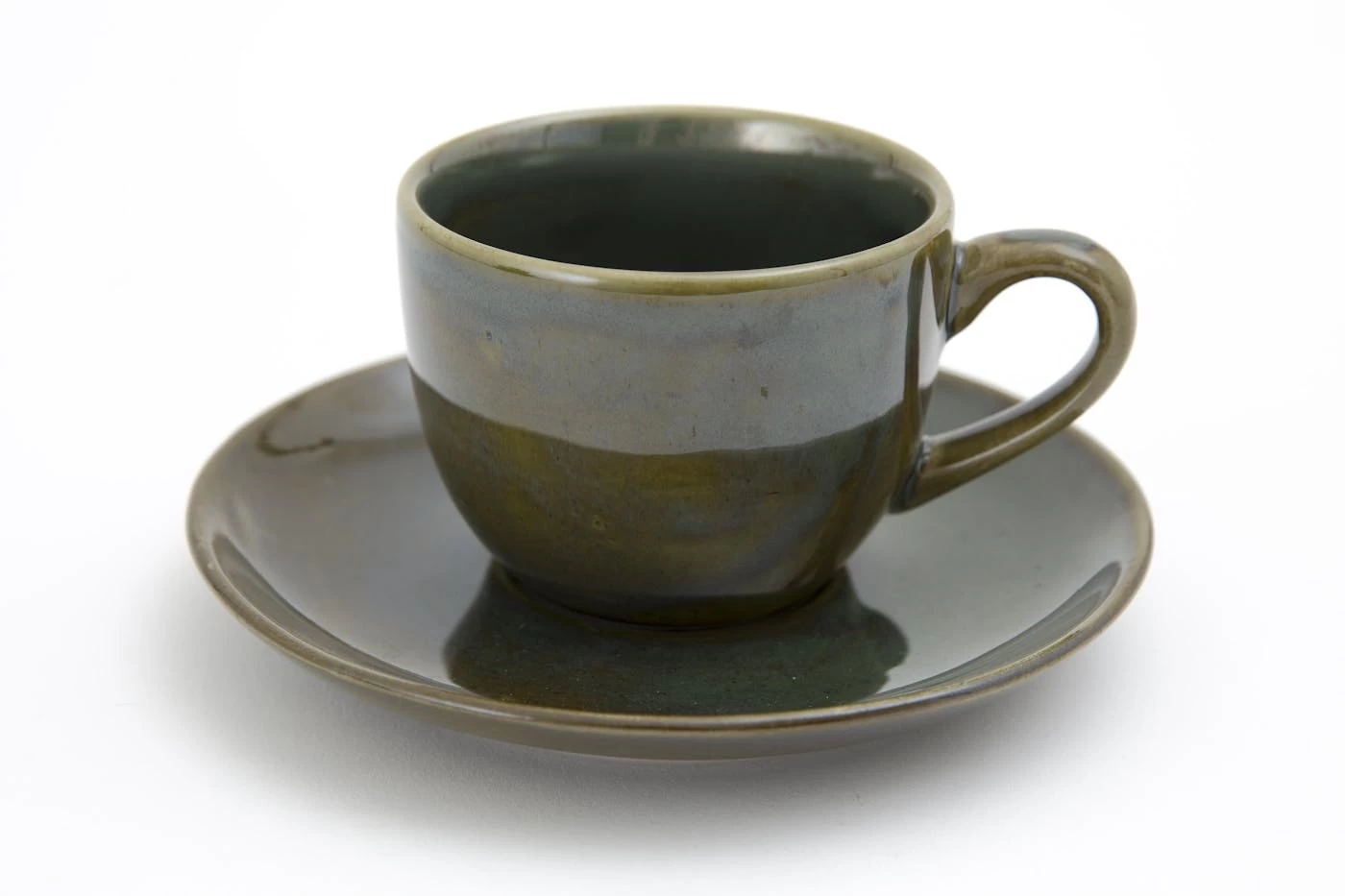 CAMERON, Cup And Saucer, Handmade Pottery, Green, Model 2