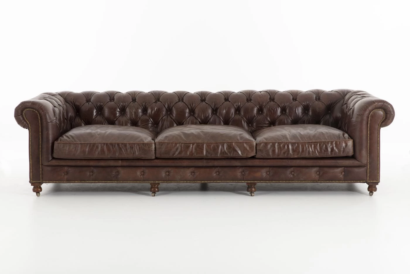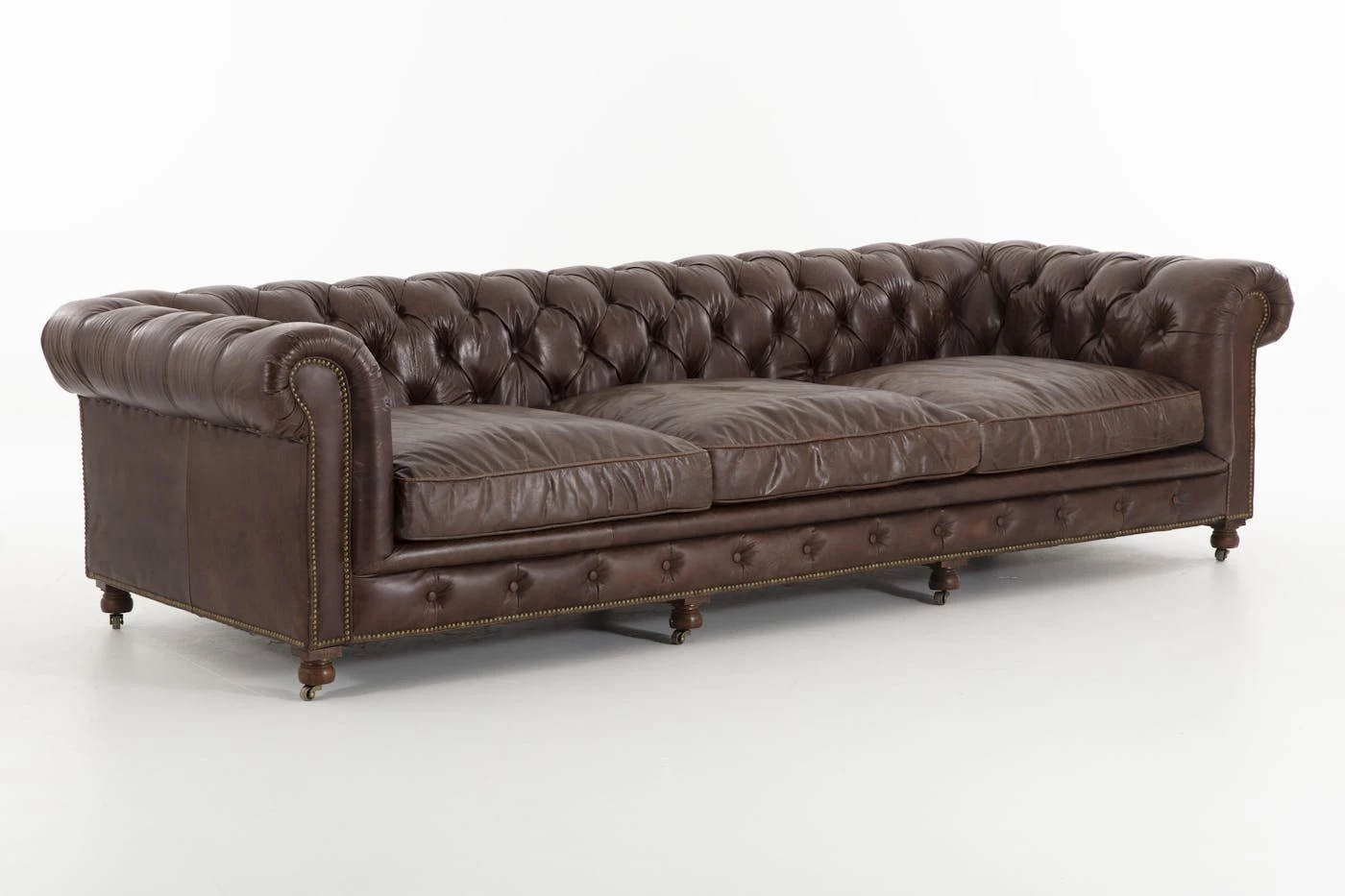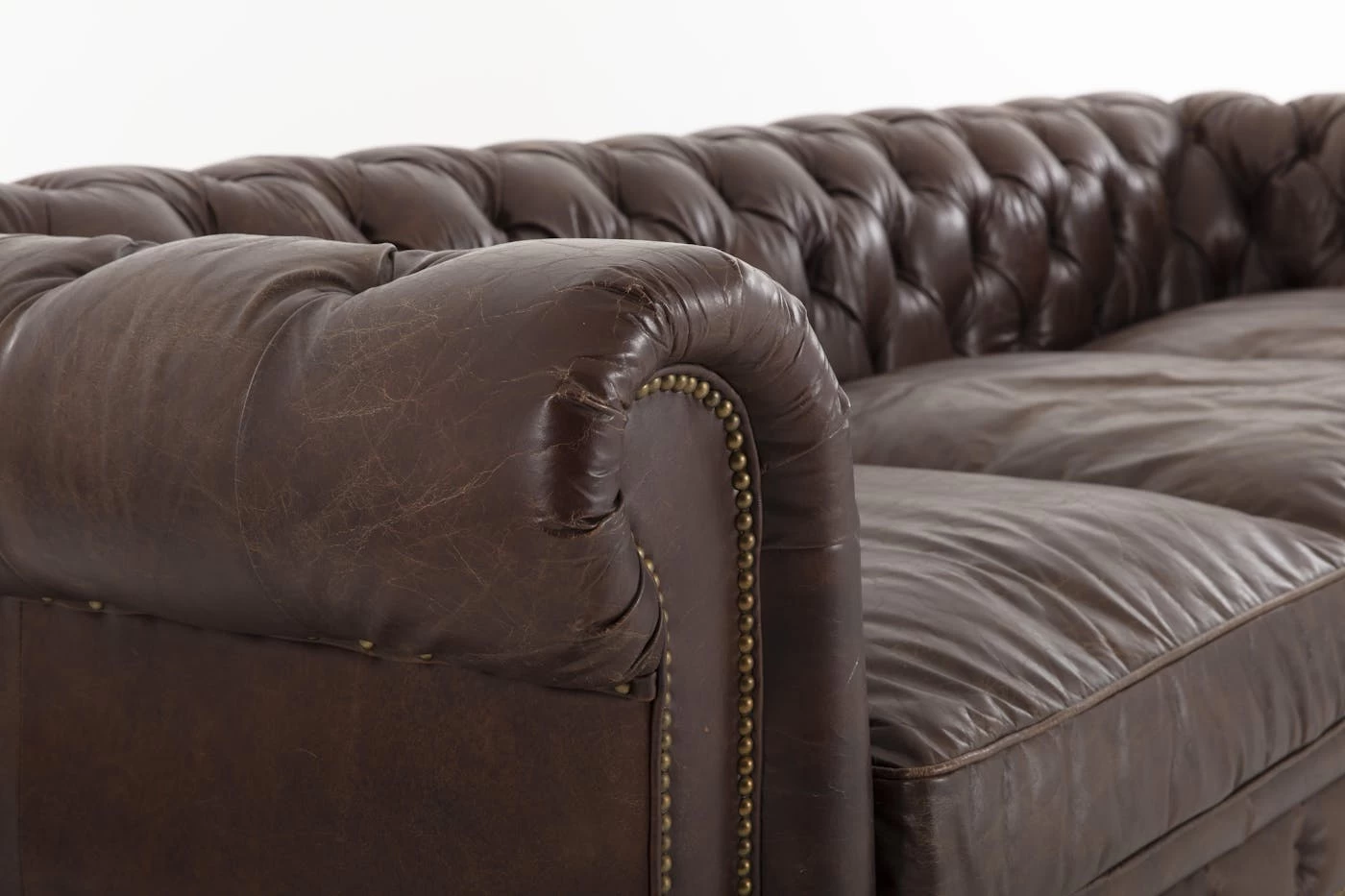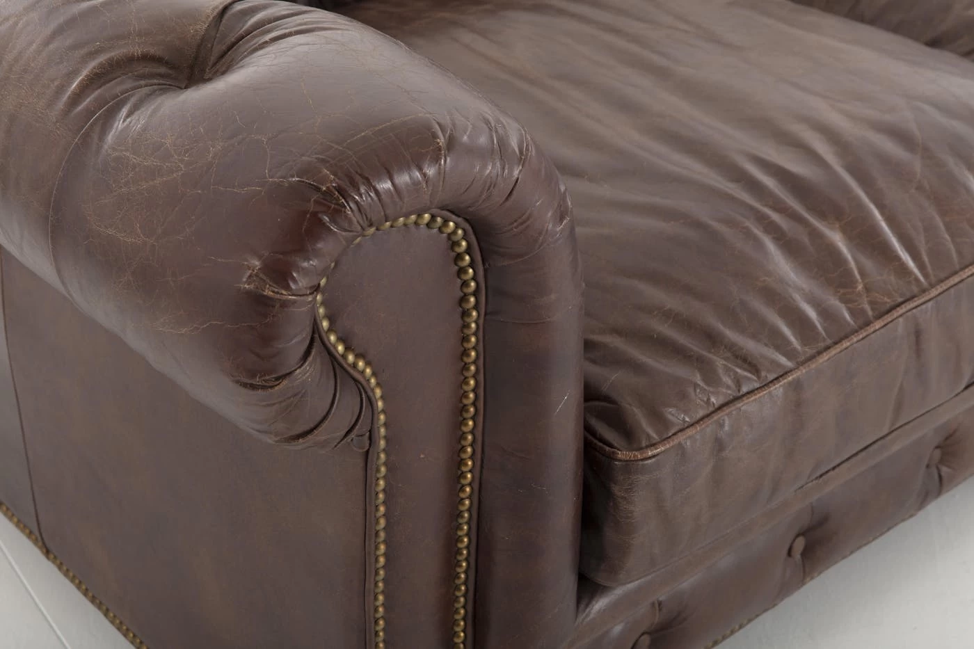 Comfort and style don’t have to be mutually exclusive! Our suave Edinburgh furniture is fashioned from vintage brown leather, tufted and finished with a copper nail trim, while the leather cushion seating is filled with soft foam for a lush comfort. It’s a distinguished piece, classic and elegant, with supple aged leather that offers a rugged worn look that will never go out of style.