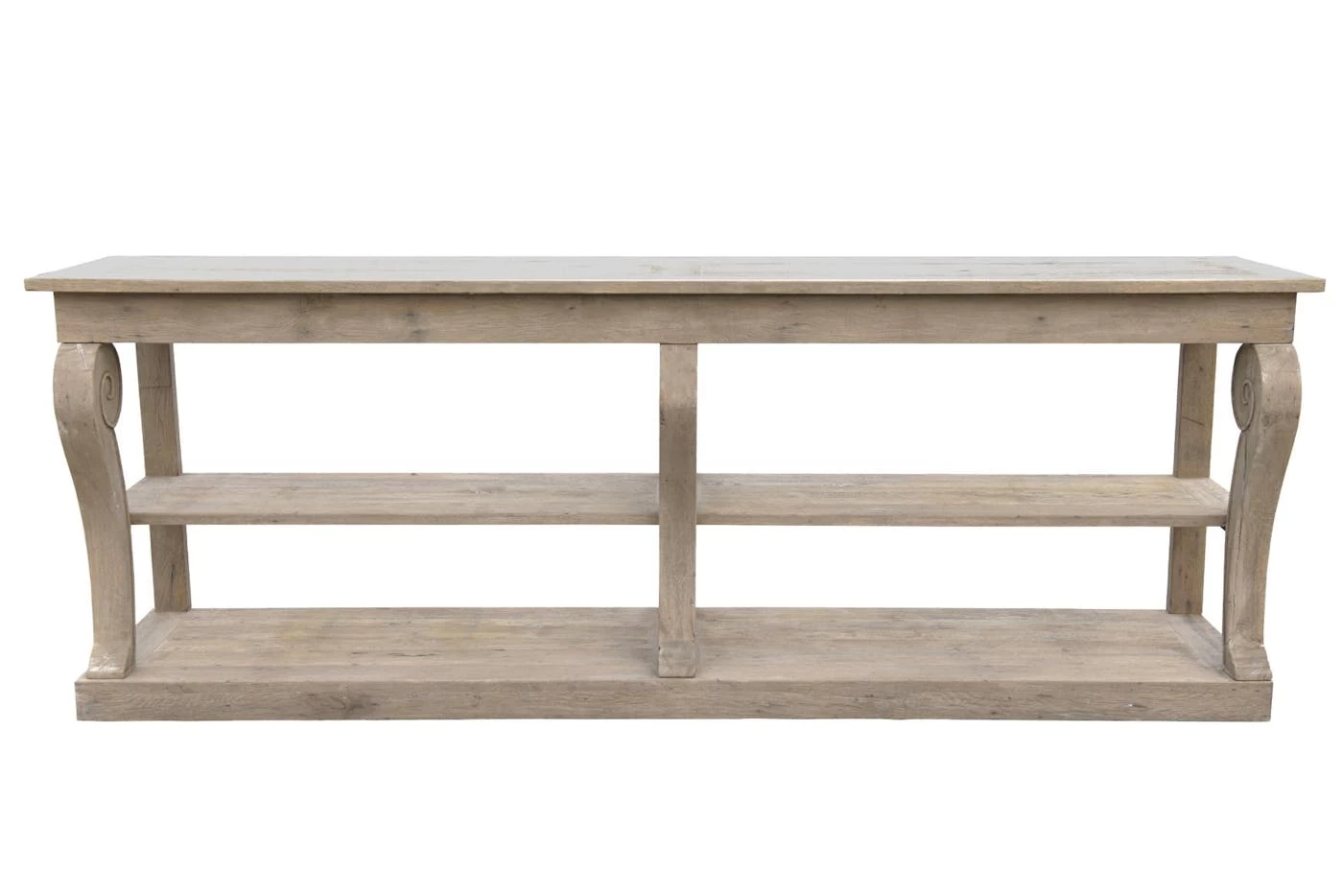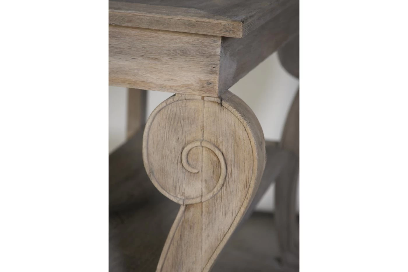 Consoles of this era show a similar curled design in the front columns, however the natural finish of the Farley takes the design into the present. The finely molded trims of the table reference the Restoration influence. Undone from frills the piece has a sincere feel, a sense of understated luxury established simply by its restrained shape and svelte material.