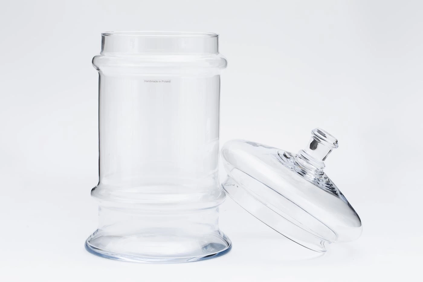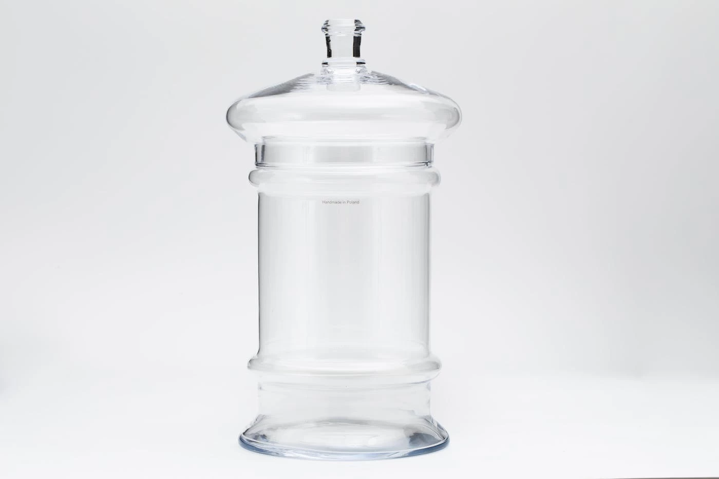 An enticing candy jar simply makes your sweets that much sweeter. Generously proportioned, the jar and its matching round lid are mouth-blown and shaped by hand in an apothecary-inspired style using traditional techniques. Also just as stunning when filled with pasta, dried flowers, or even shells.
