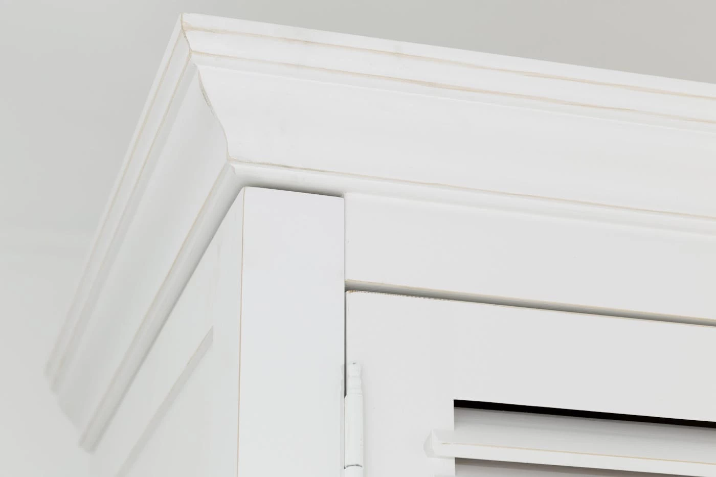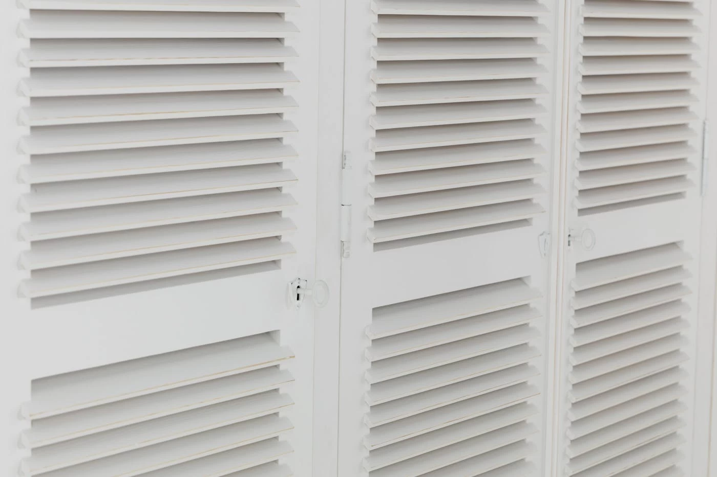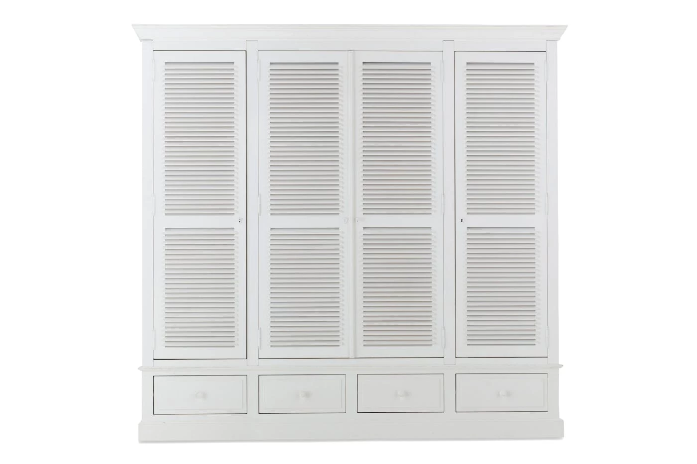 Bring ease and sophistication to any bedroom with this stunning hand-finished cabinet, painted in a warm antique white hue. The distinctive louver doors and patinaed, slightly weathered look give this refined piece a natural, classic feel. This iconic cabinet will bring harmony and charm to whatever room is lucky enough to house it.