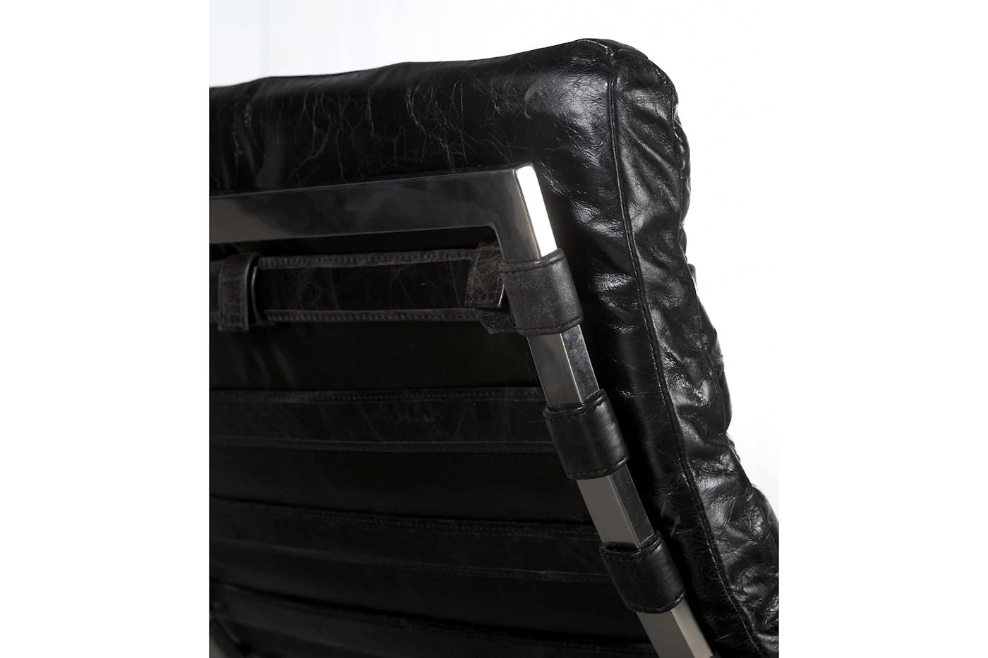 Both comfortable and sophisticated, this luxurious lounge chair is an immediate eye-catcher. Inspired by mid-century modern pieces, this elegant seat has a slightly curved design created in timeless materials including sumptuous leather and stainless steel. The steel structure of the chair is covered by deeply colored leather with a weathered finish; the leather cushion cleverly attaches to the base by means of leather belts with buckles. You »ll be more than inspired to lounge away an evening!
