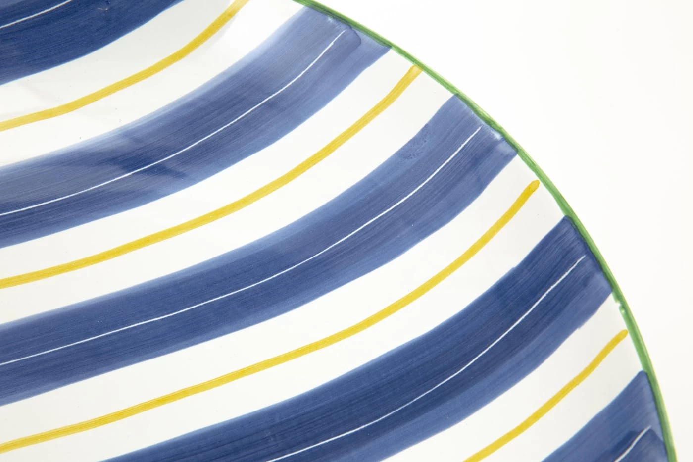 Put a smile on your guests’ faces with a mix of yellow, green and blue in playful geometric patterns. Special detail: every plate, bowl and dish is carefully finished with a changing colourful border.