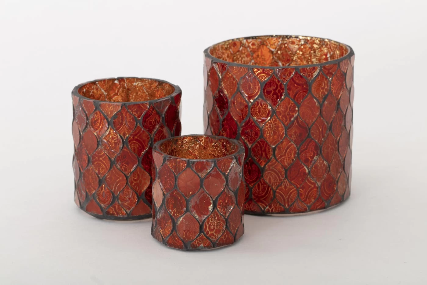TEMPLES, Tea Light Holder, Glass, Orange, S